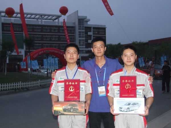 一等獎得主吳文杰(右邊),三等獎得主張興(左邊),龍神培訓(xùn)教師宋明(中間)