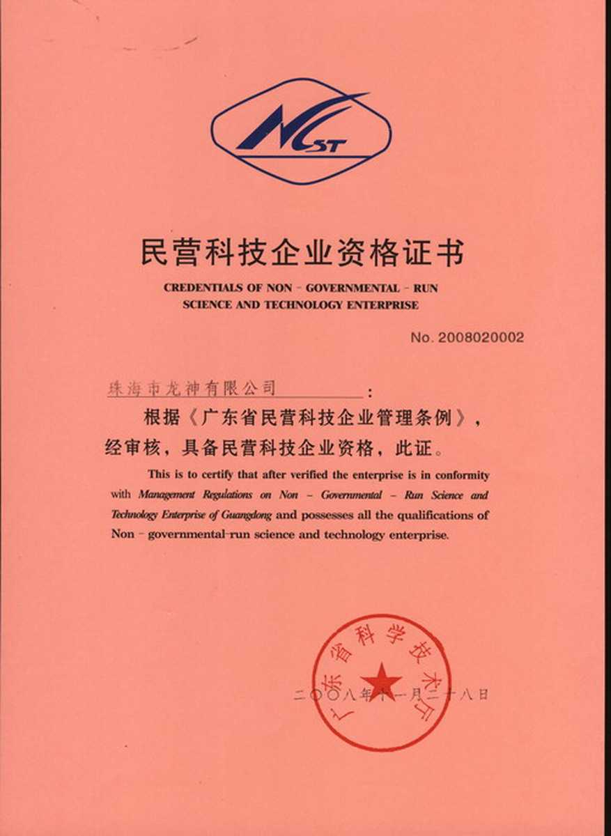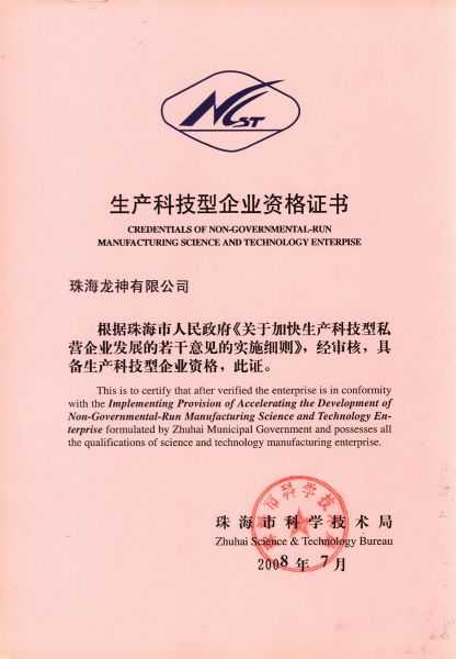 資格證書 一、ISO9001:2008質(zhì)量管理體系認(rèn)證ISO9001:2008質(zhì)量管理體系認(rèn)證證書 二、廣東省民營科技企業(yè)資格證書民營科技企業(yè)資格證書 廣東省民營科技企業(yè) 三、珠海市生產(chǎn)科技企業(yè)證書生產(chǎn)科技型企業(yè) 珠海市生產(chǎn)科技型企業(yè) 認(rèn)定證書 生產(chǎn)科技型企業(yè)資格證書(以上圖片均可點(diǎn)擊放大) 2012-11-27 36270